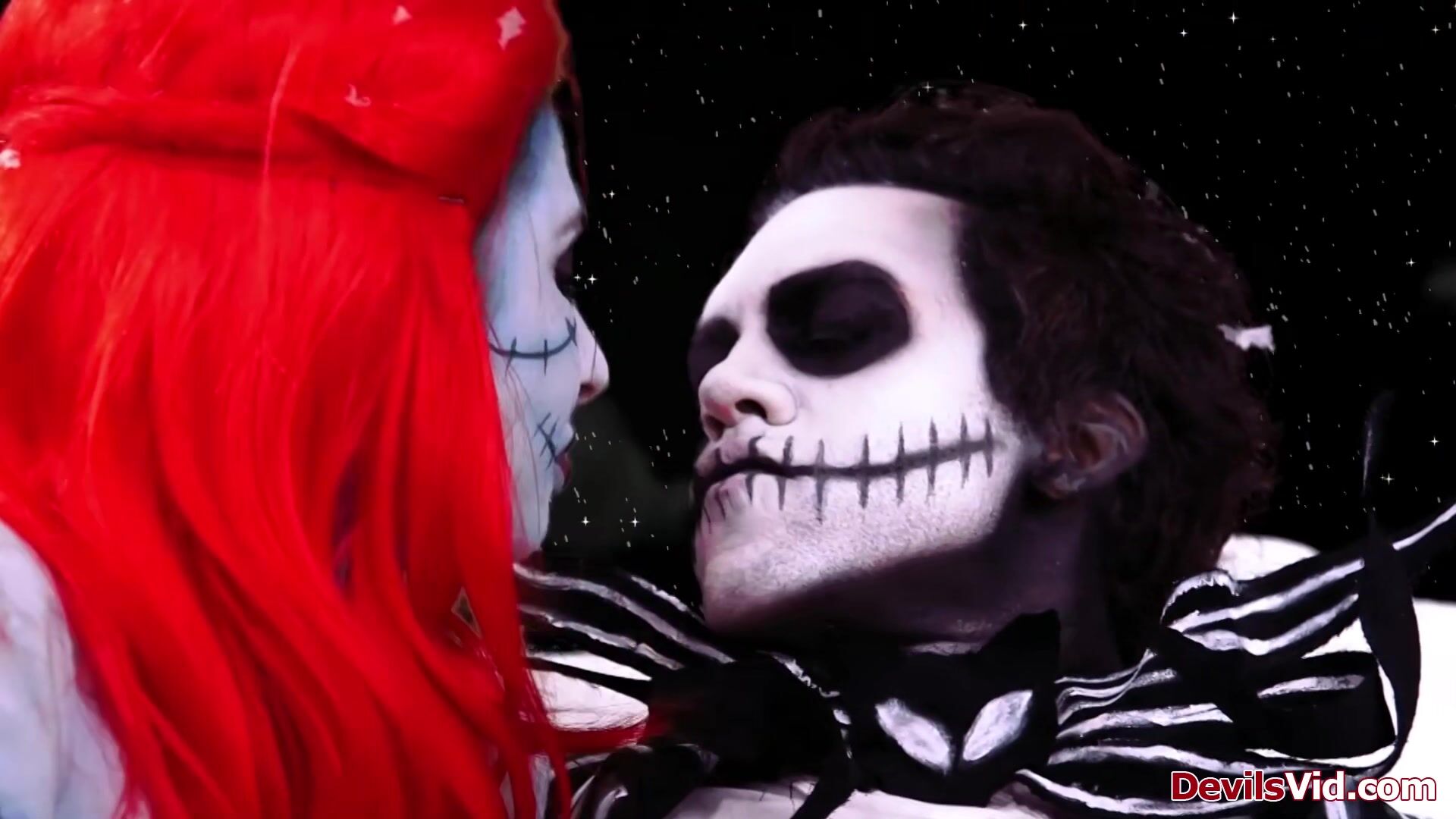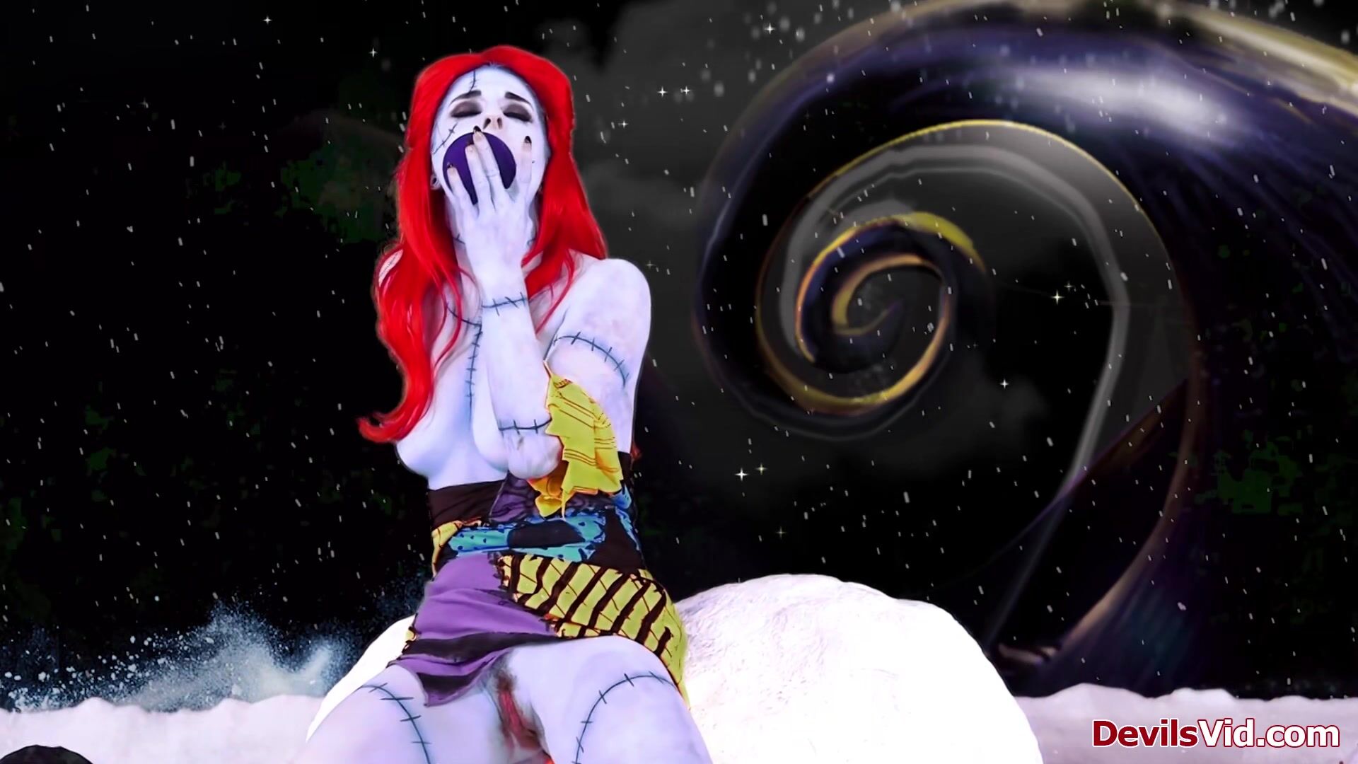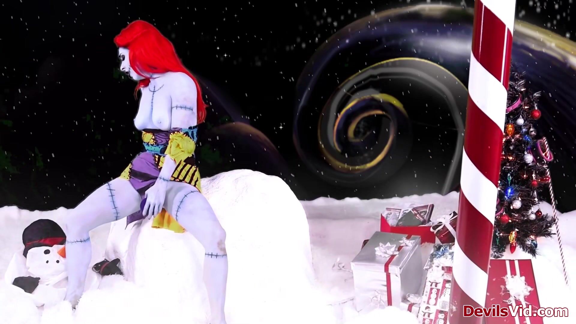 Joanna Angel features in A nightmare before Christmas XXX parody.As Sally is toying her pussy Jack shows up.He shows her his Christmas package is still working.The big tits redhead deepthroats his big cock before he fills her wet snatch with it