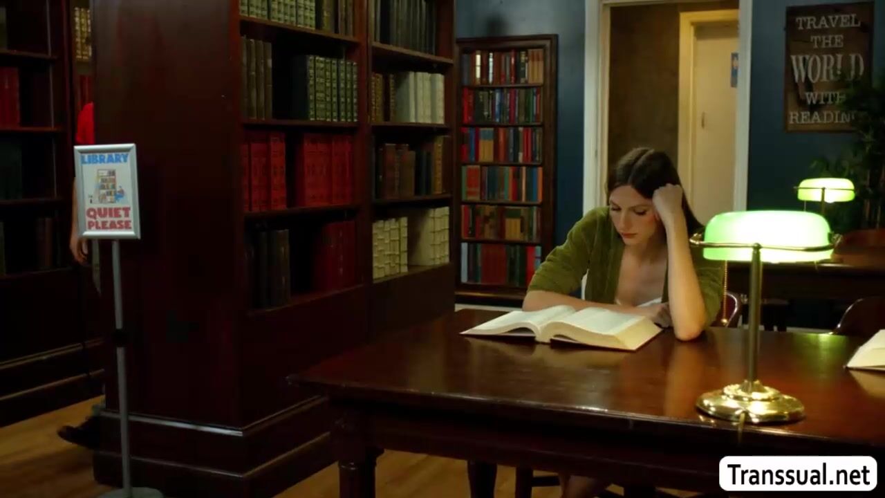 Horny shemale librarian is sucking dick while no one around in the library.After that,she get naked and then let the guy bareback fuck her butthole so deep and fucking hard.Go to Transsual.com for the full video of this and more.
