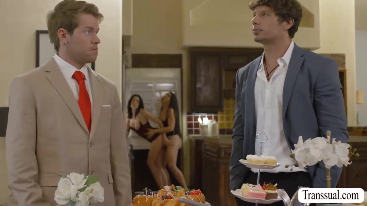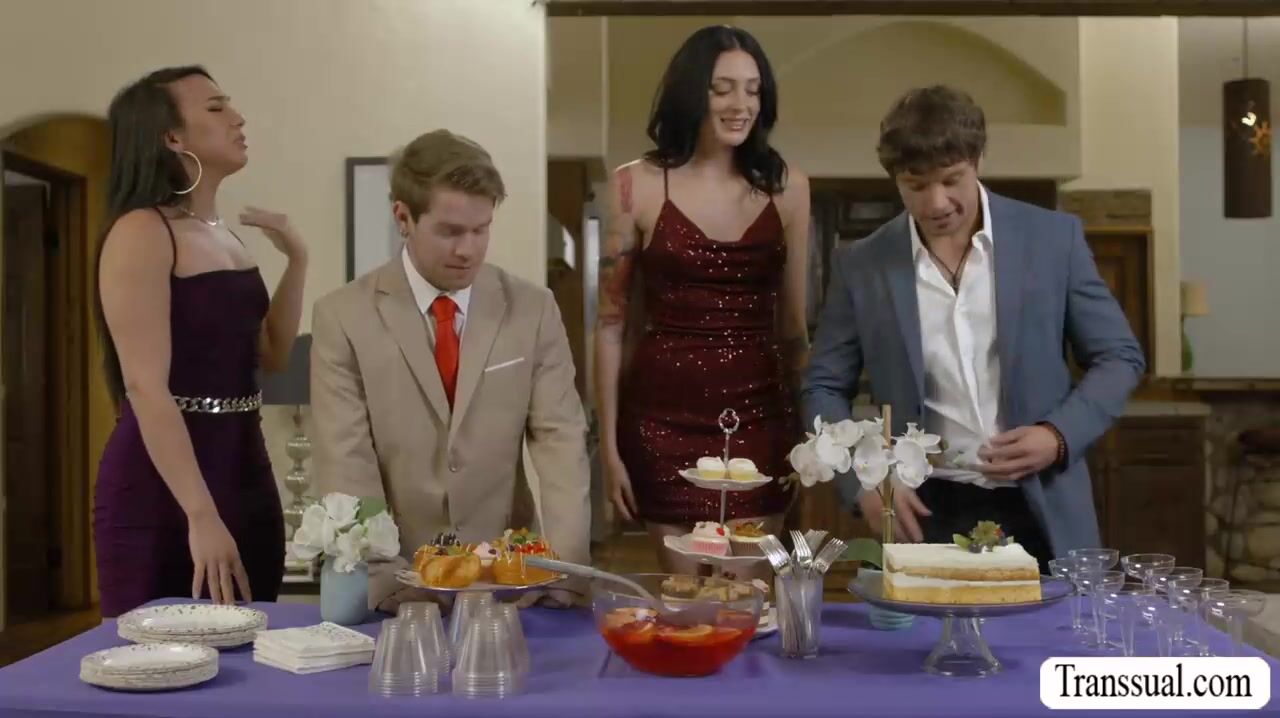Charlotte is excited to be marrying Johnny,but Johnny is being bossy and rude in front of their party guests,Kasey,and Jason.Charlotte has had enough she shoots Johnny the middle finger behind his back.Go to Transsual.com for the full video.