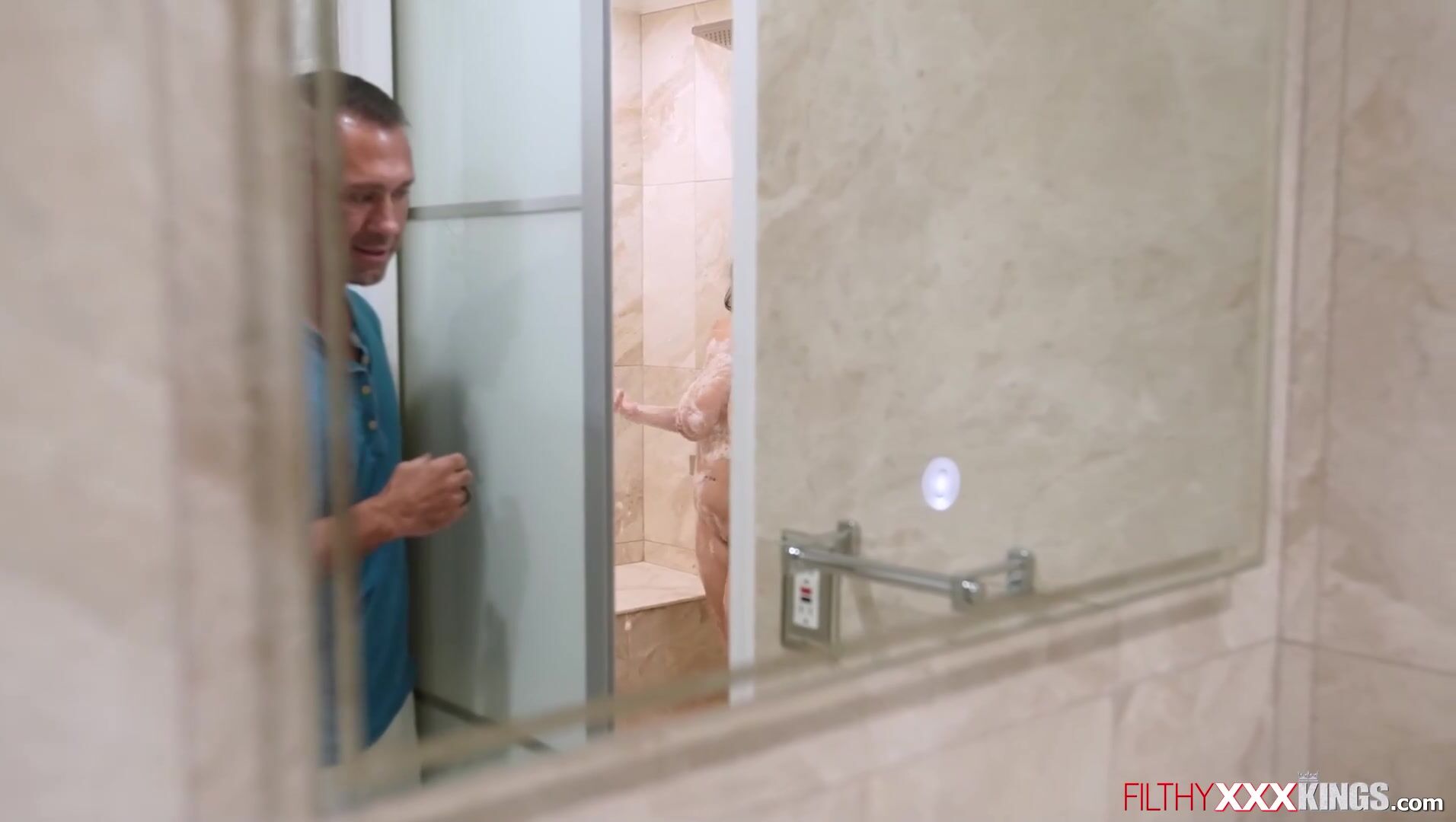 Big tits latina Dani Valentine invites her stepbro in law to join her in the shower.The guy caresses her big boobs.The busty babe grabs his big cock and gives blowjob,she bends over showing off her big ass and getting her wet shaved pussy fuck.
