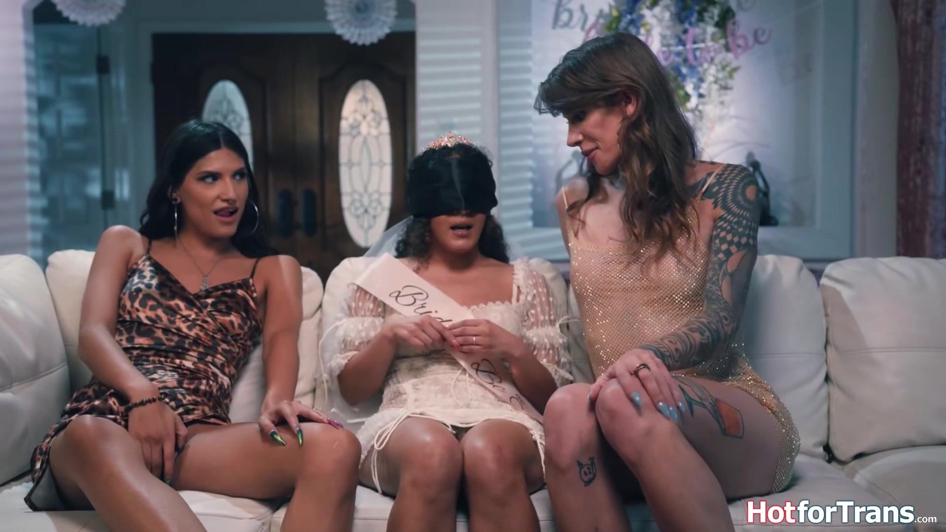 Liv Revamped bachelorette party is saved by her trans bffs Zaria Aurah and Gray Perrier.The latina is blindfolded and clueless when she sucks and is fucked by the shemales.The big cock latin tgirl is rimmed by her tranny gf while fucking the milf
