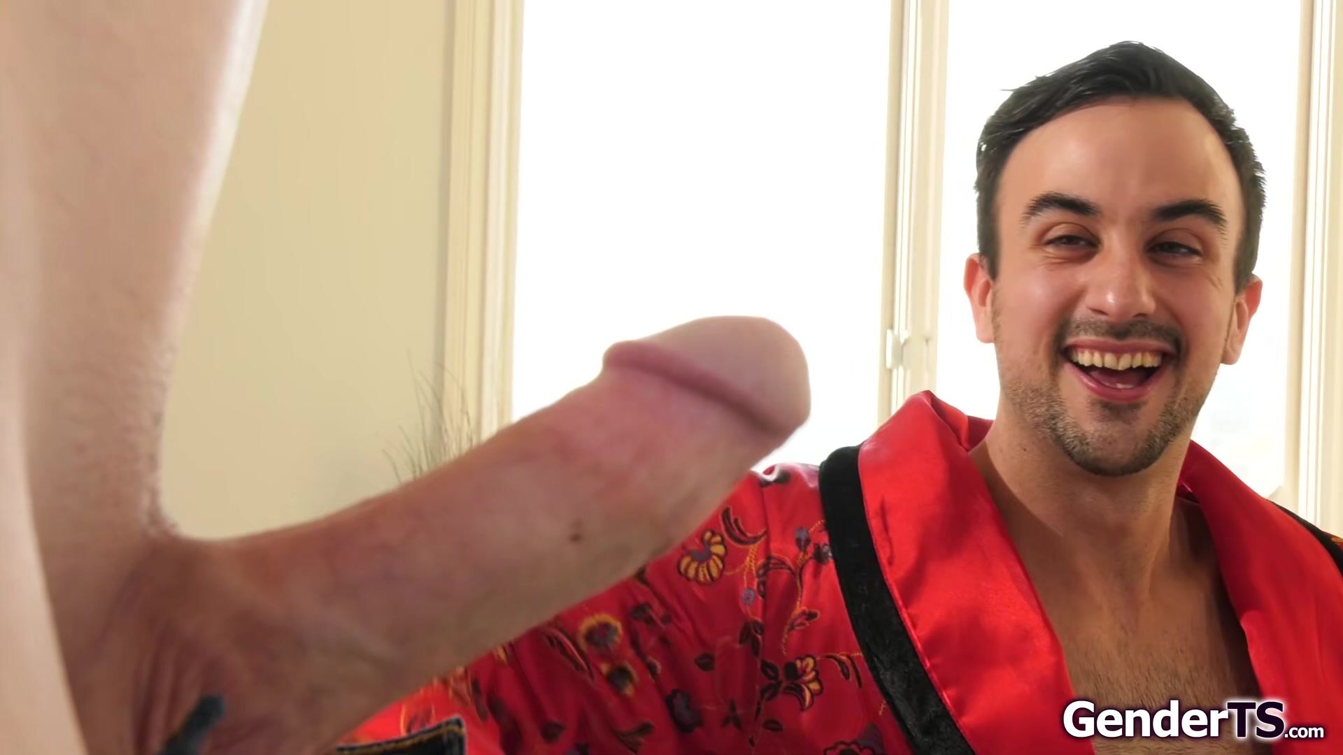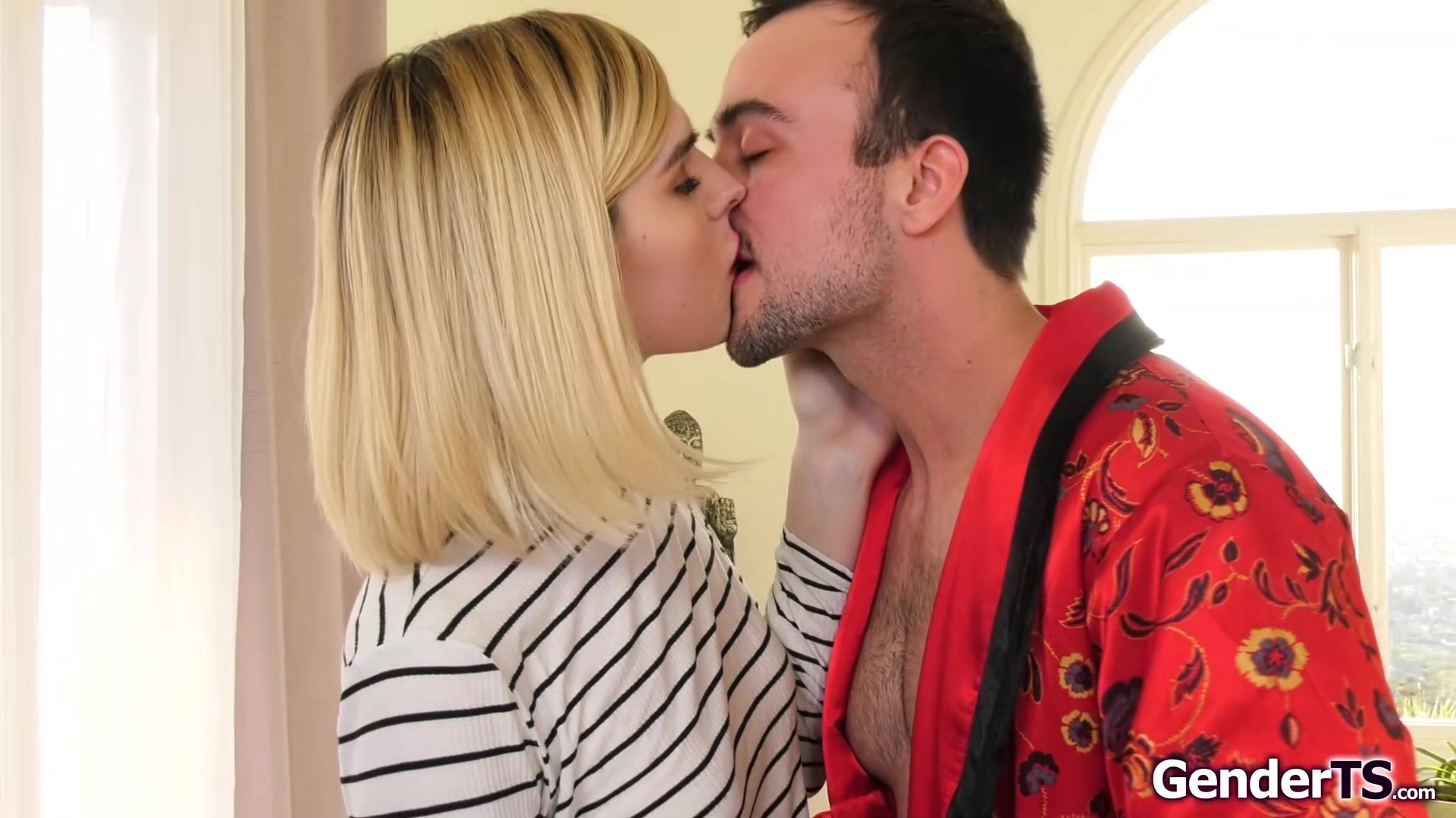Trans Jean Hollywood knocks on a strangers door.She needs to call for a ride but it takes a while.The small tits tgirl shows him her tranny cock and he deepthroats and rims the shemale.The blonde transsexual bareback anal rides on his dick