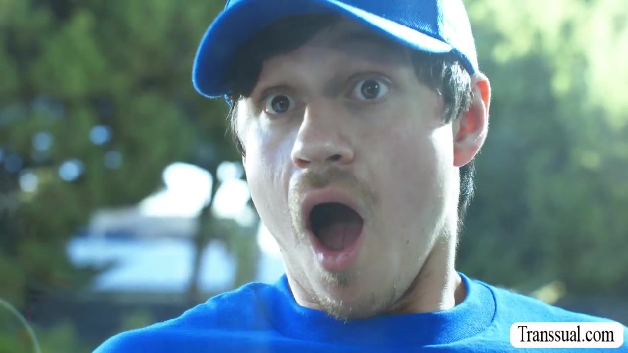 Stepmom caught this pervert delivery man sneaking while shes taking a bath.After that,she caught her stepdaughter playing with the delivery and grabs him and lets him fuck her ass.Go to Transsual.com for the full video of this and more.