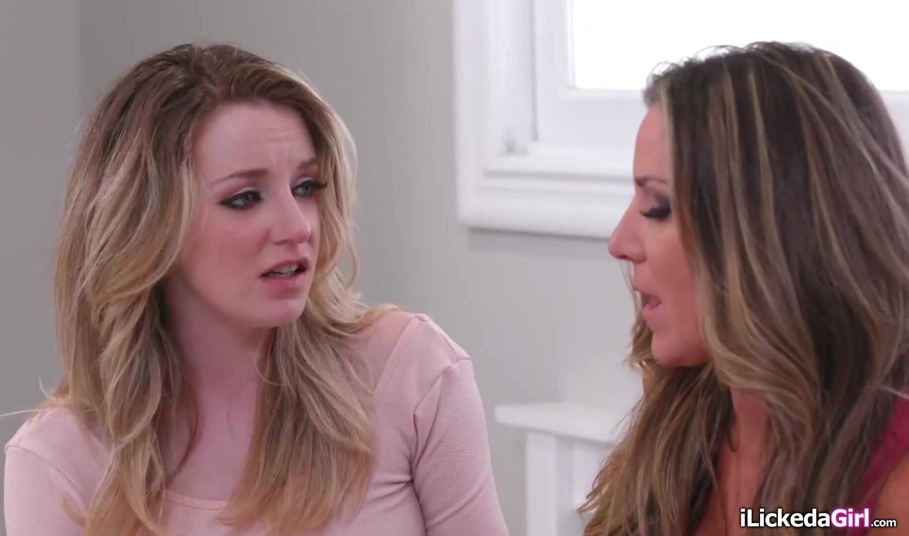 Kayla Paige tells ebony lesbian Noemie Bilas to leave after catching her kissing her petite blonde stepdaughter Kate Kennedy.Kate comforts her jealous stepmom by kissing her.The big tits milf is licking her shaved pussy before they do scissoring.