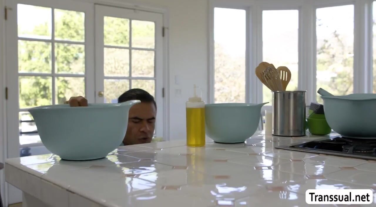 Hot and intense sex This scenario has a lot of heat!Packed with explosive climaxes and difficult postures!Visit Transsual.net to watch the entire video of Draven Navarro teaching TS Leah Hayes how to make a cake before letting her fuck him in the ass.