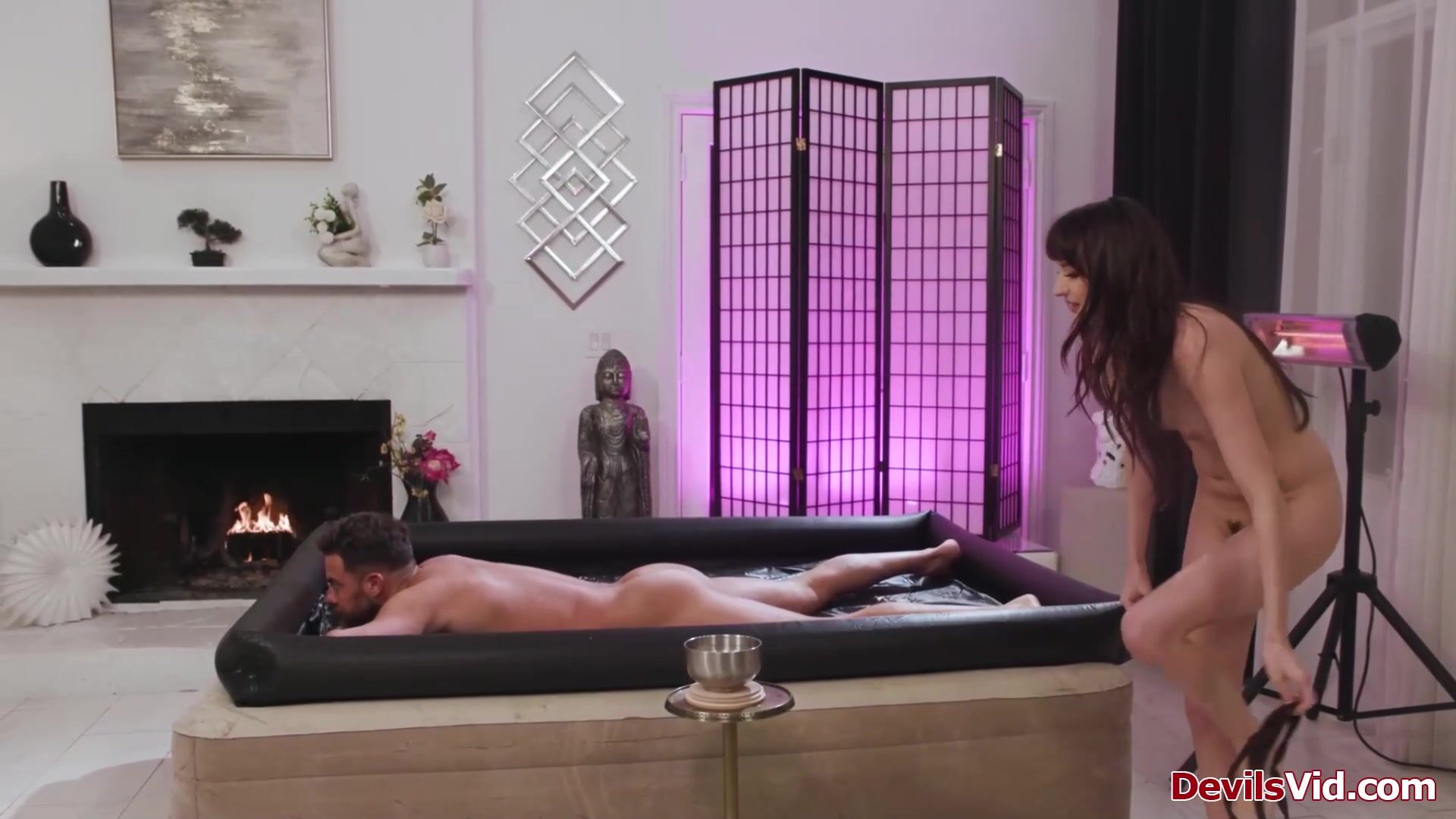 Lesbian masseuse Lana Smalls is willing to learn nuru massage with her boss.The smalls brunette gets turned on seeing his big cock getting him oiled up.The petite babe is sucking and deepthroating him.Then she lets him fuck her wet hairy pussy.