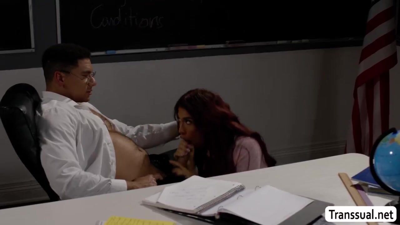 Extra credit is due! Watch this gorgeous TS babe engage in intense,steamy action! incredible climaxes and a variety of positions!Im sucking my teachers dick to get him to let me pass his class.The whole movie is available at Transsual.net.