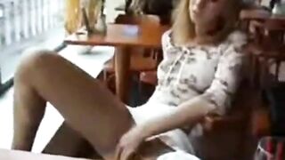 Gal masturbates in café as she has her coffee