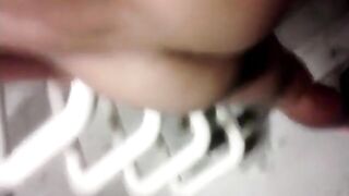 Light skinned guy gets fucked raw by big black dick in the staircase.