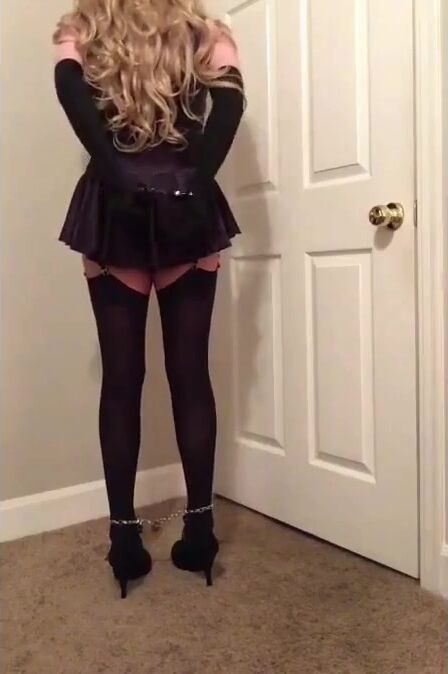 Sissy Crossdresser Bondage in Lycra Dress and Stockings