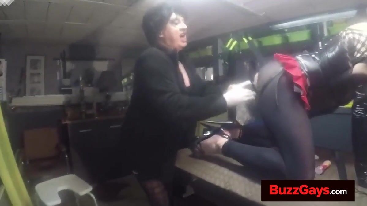 Shemale take pleasure with her assistant giving dildo masturbation