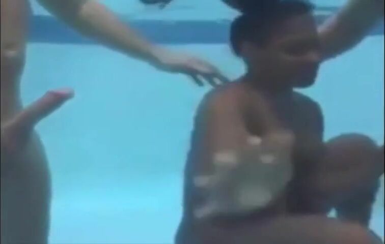 black woman sucking 2 cocks underwater