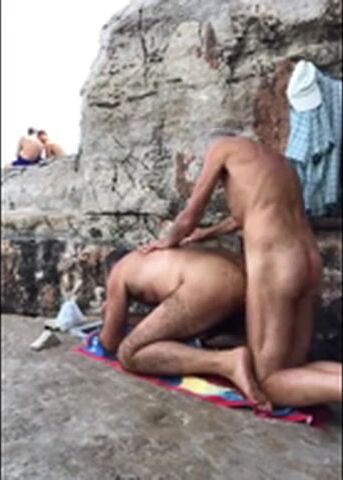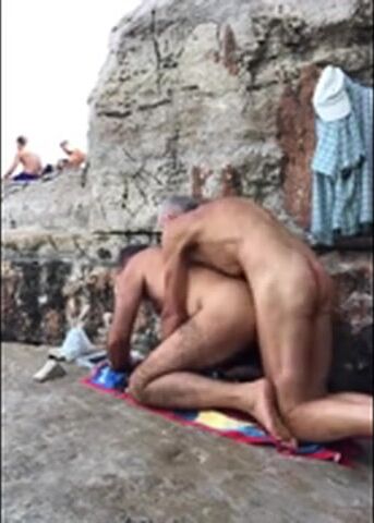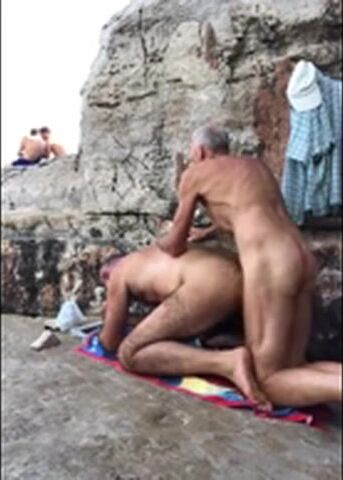 2 dads on the beach fucking