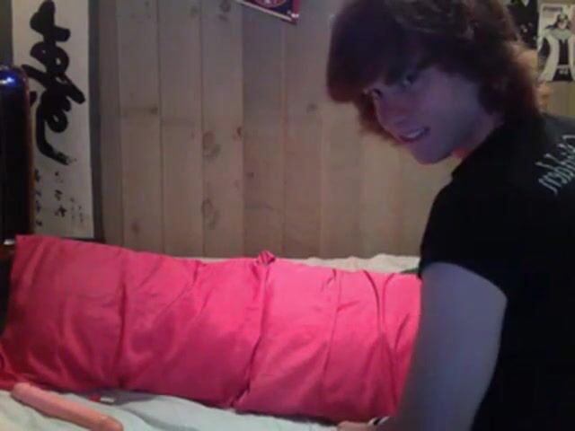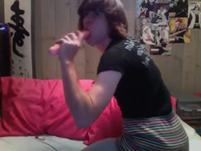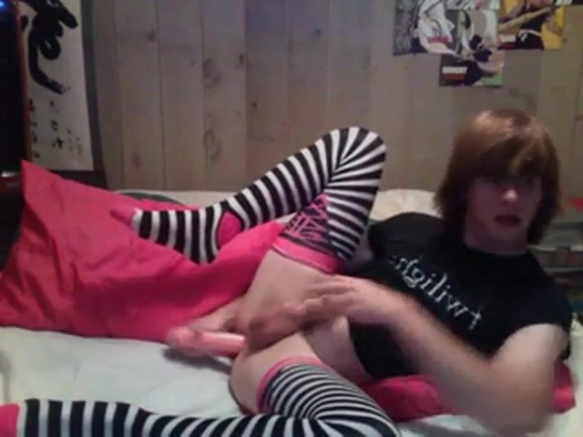 Faggot fucks his hole in preparation for real cock