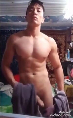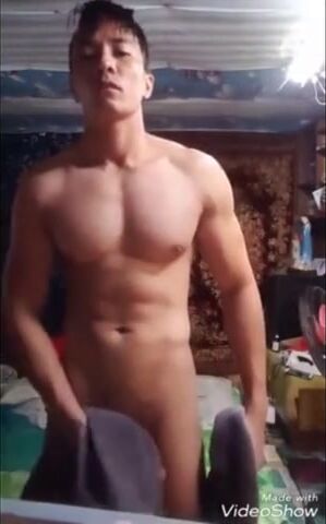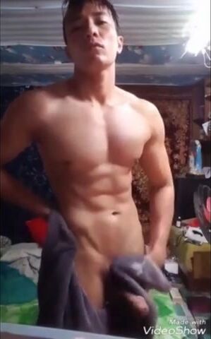 very cute asian stud shows off & JO & wanks his thick cut dick on cam
