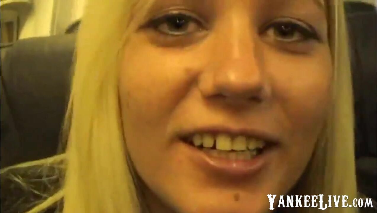 Blair blowing in an airplane