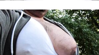 damn, I totally needed to flash my big udders outdoors! it felt great to hold the cam in one hand and my dick in the other, while my huge mantits could enjoy the fresh and cool air!