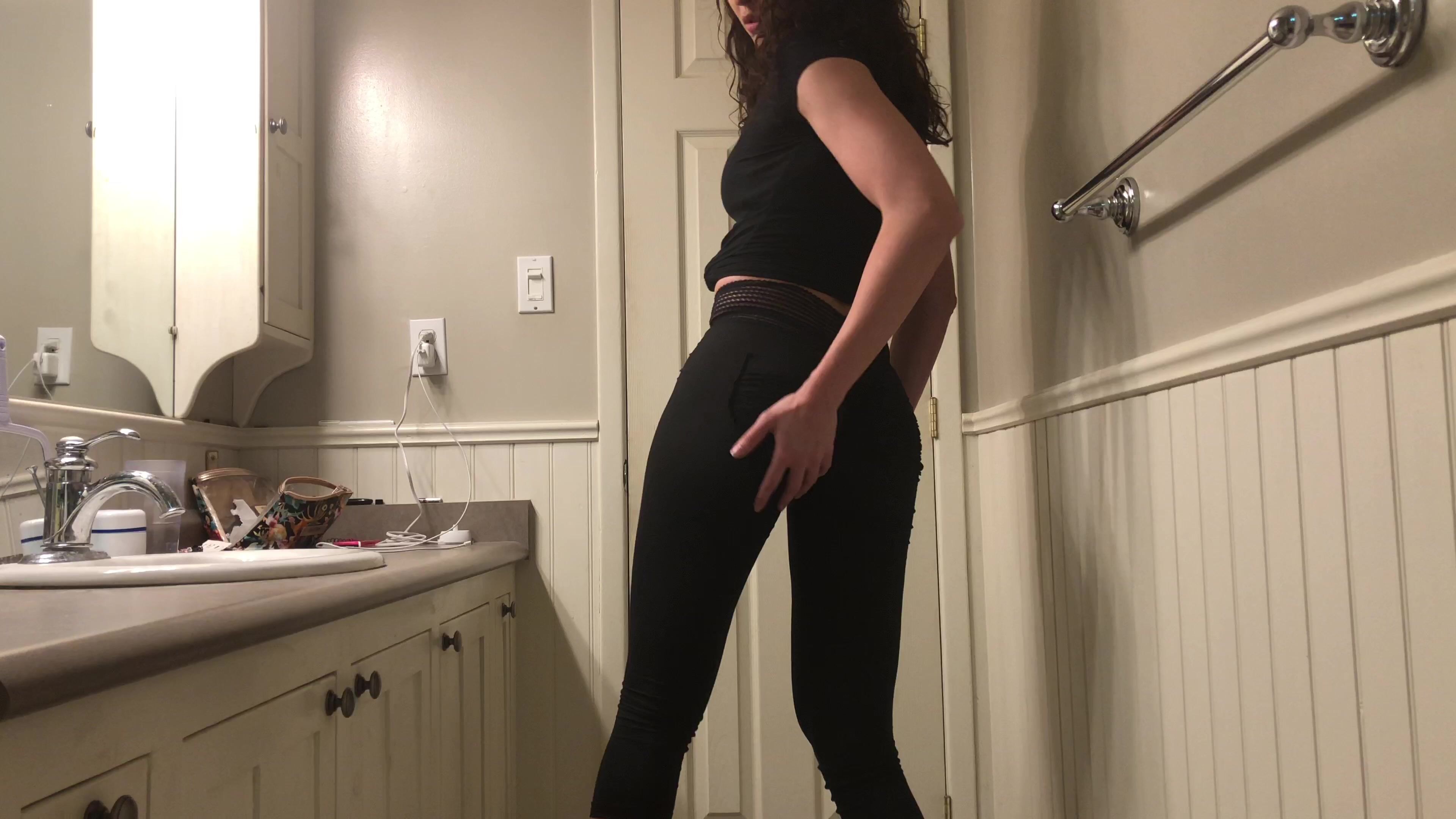 BizarroPornos.com - Black Leggings Tease Counter Poop
