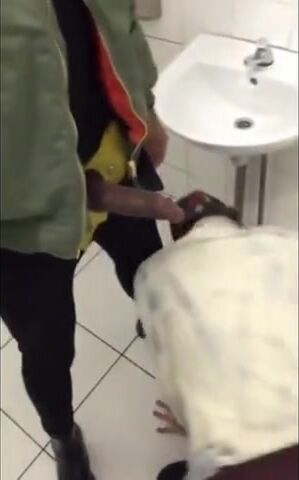 Twink kneeling waiting for BBC daddy piss
