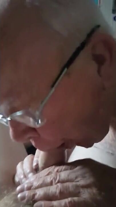 Grandpa sucks a young cock