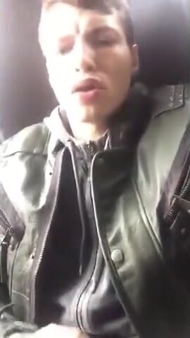Twinks cums in public on the back of a bus