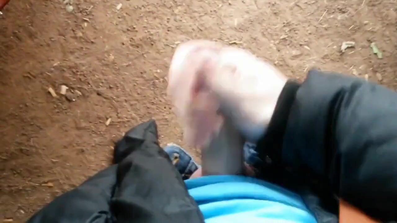 Me jerking and cumming in a public park on a rainy day.