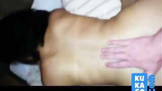 Slutty Brazilian slammed doggy style in cheap hotel room, in her ass and pussy.