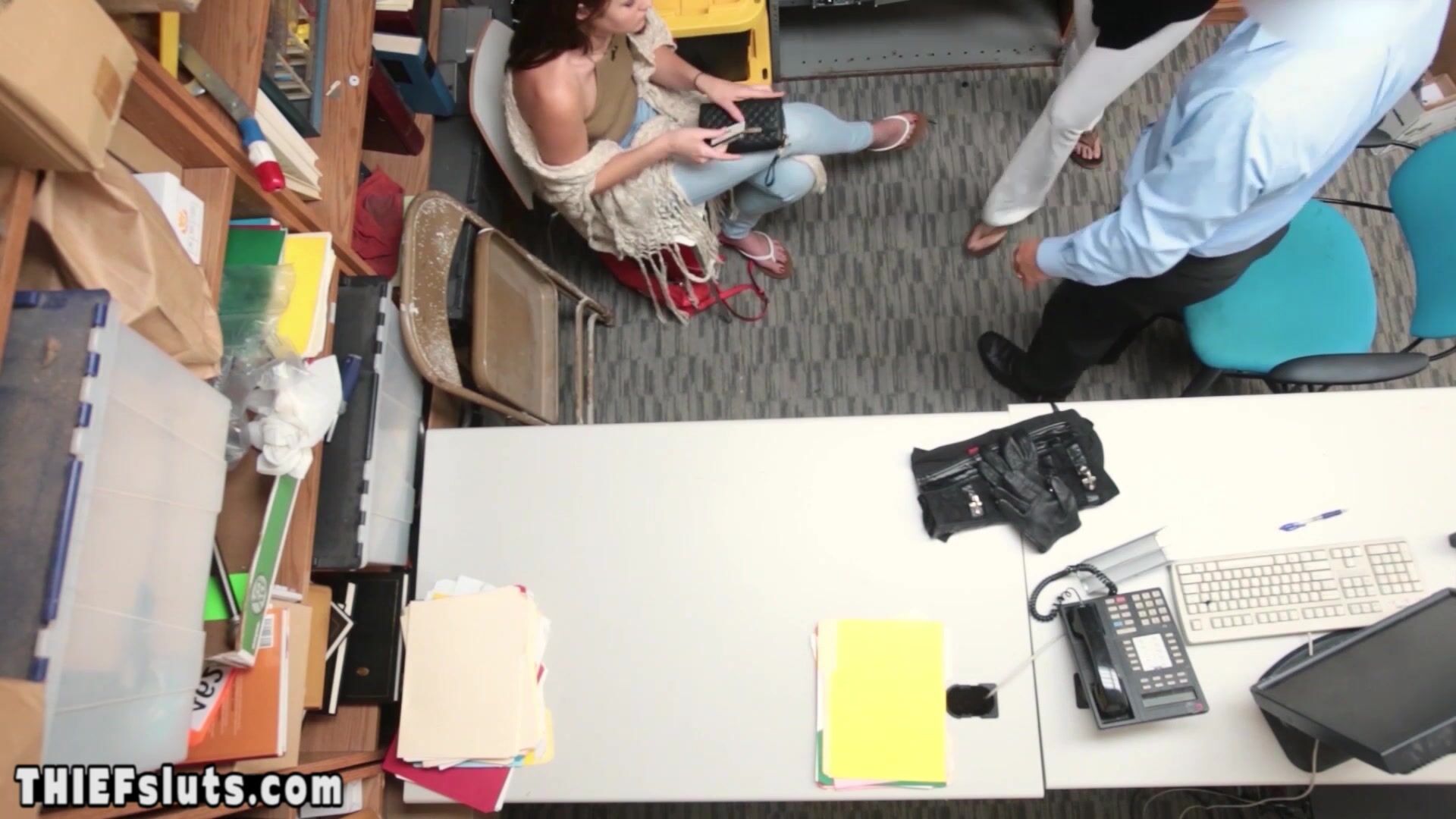 Skinny brunette teen shoplifters Peyton and Sienna with small tits have to suck a dirty LP officers big dick after the interrogation then they let him to fuck their shaved pussies to avoid jail