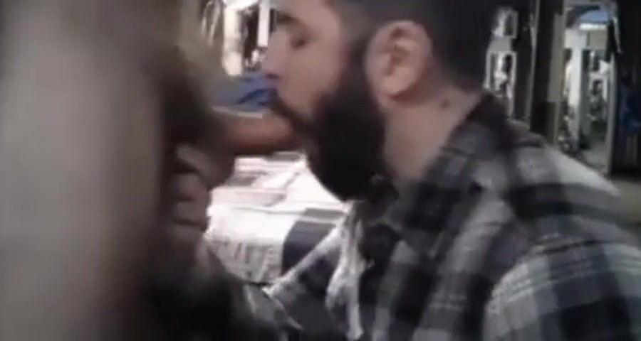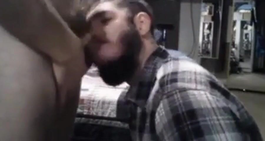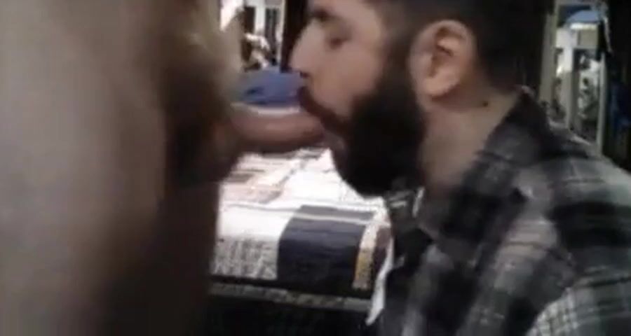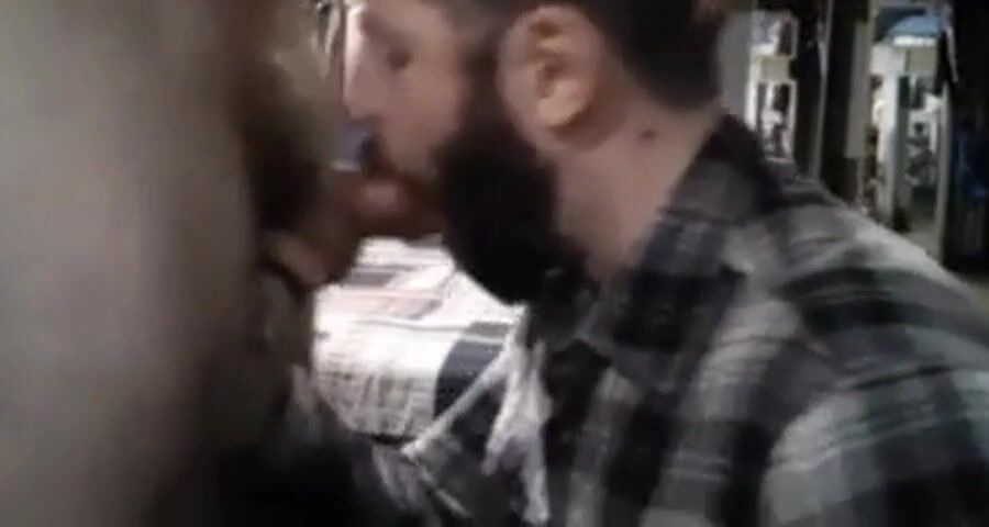 cum hungry cocksucker goes to work on his man's dick.