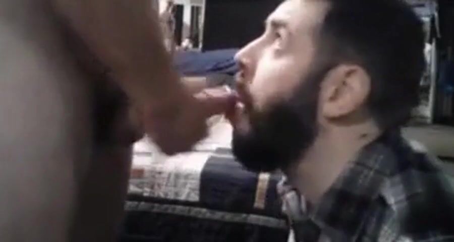 Sub sucking and feeding on his man's load