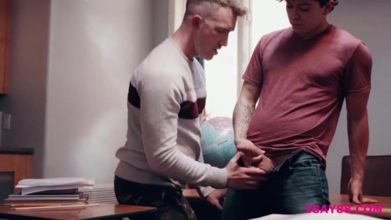 In the classroom, hunk professor Clark Davis confornts handsome coed regarding her grade but Nick Fitt is fast to show his admiration and begins kissing him while caressing his cock under his pants. The two horny men later on trade luxurious oral service before their assholes are banged.