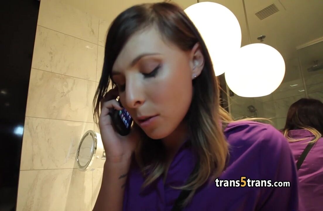Horny black stud sucked small cock of skinny shemale then got his shaft blowed deep and he fucked her tgirl tight ass hole until cumshot on her face