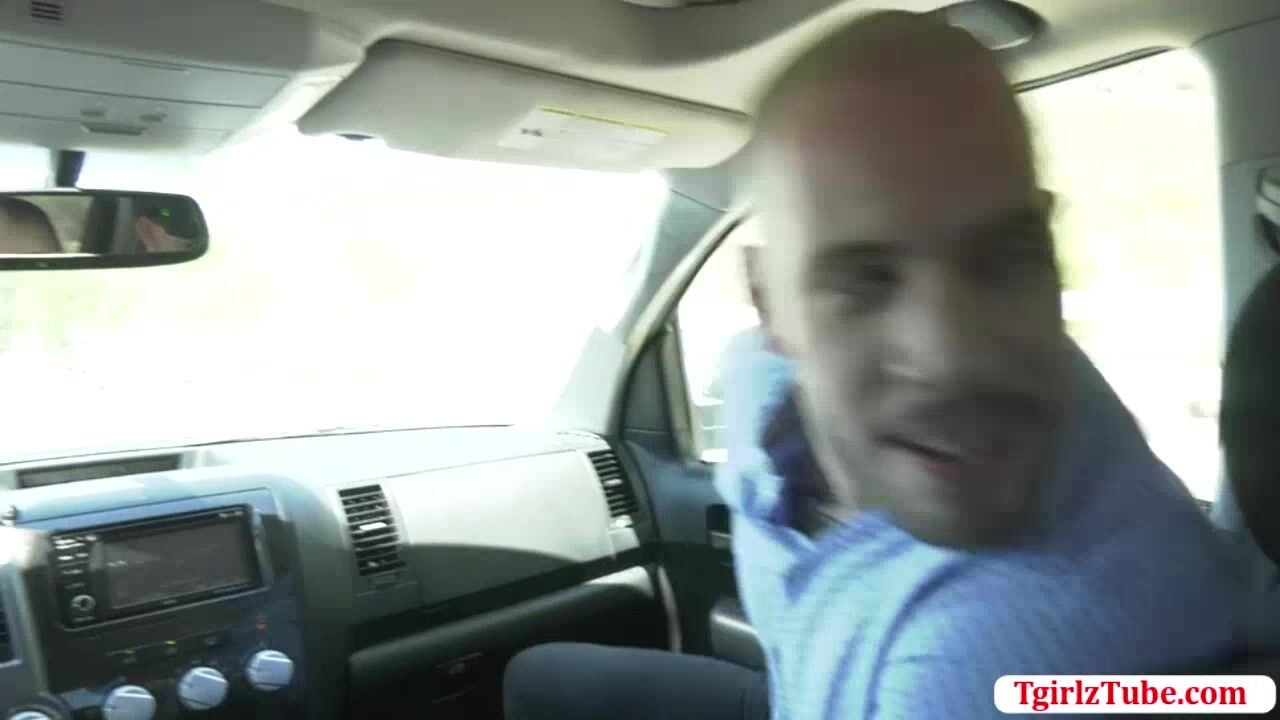 Horny bald tells his friend that they will let the shemale hitch hiker take a ride with them.After that,he lets the shemale suck his big cock and he then barebacks her tight ass in his house.