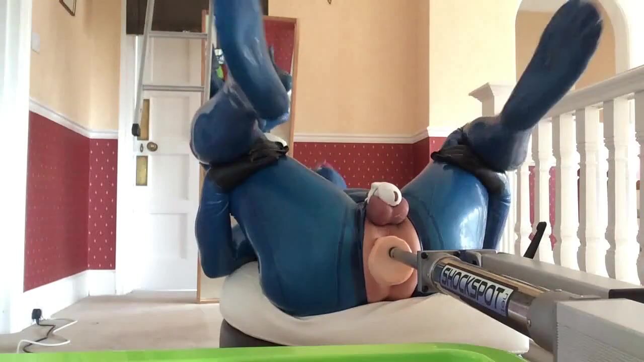 pvcsissy in chastity cage cums while anal fucking machine ploughs her gurl hole