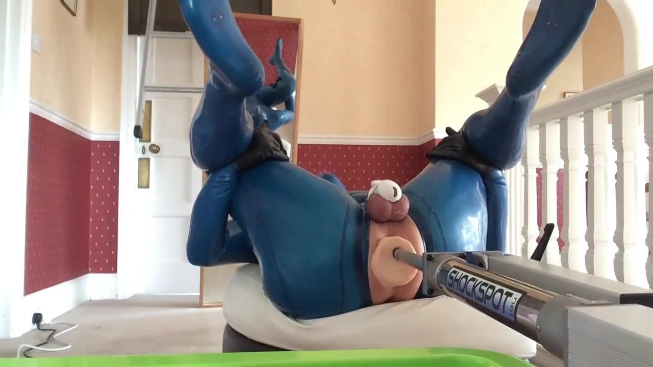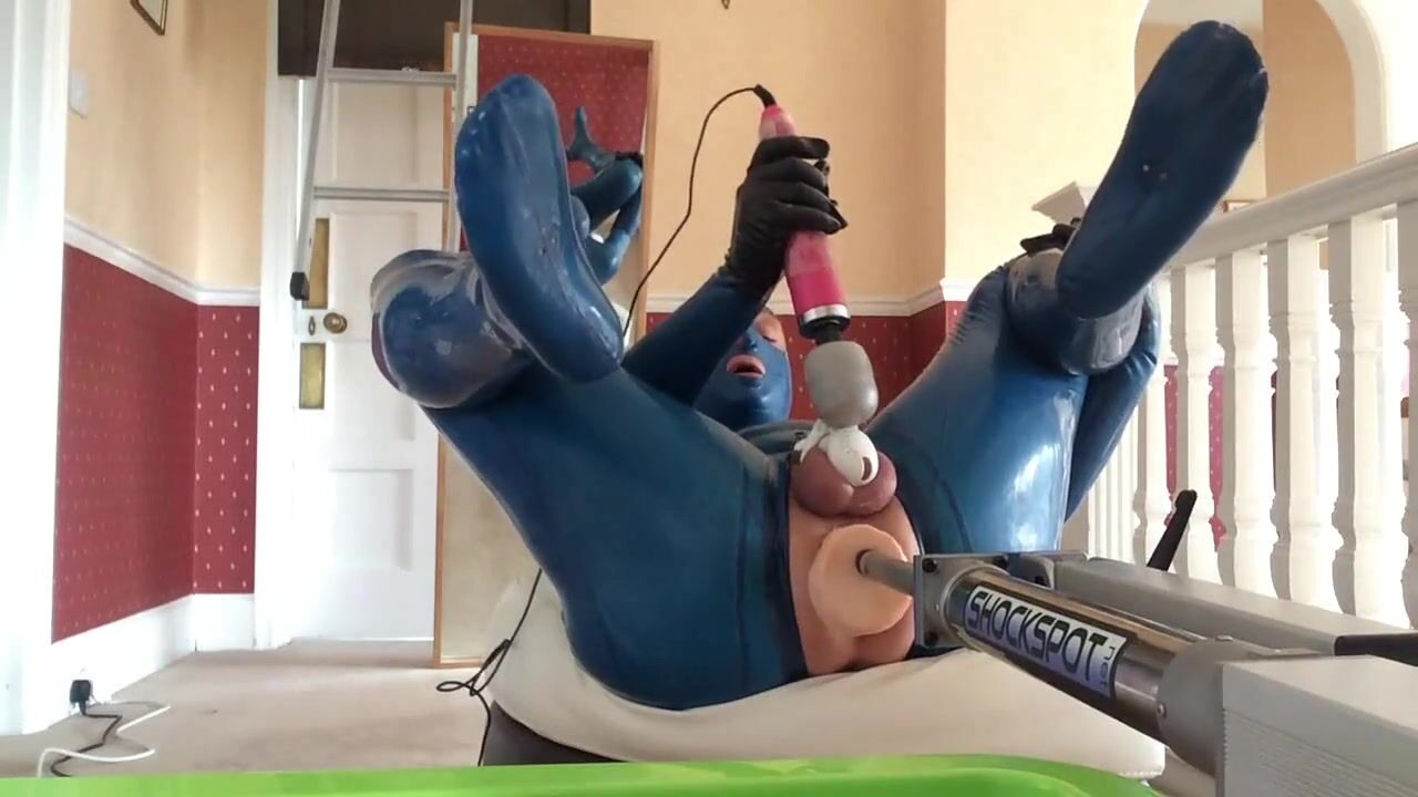 pvcsissy in chastity anal fucking machine