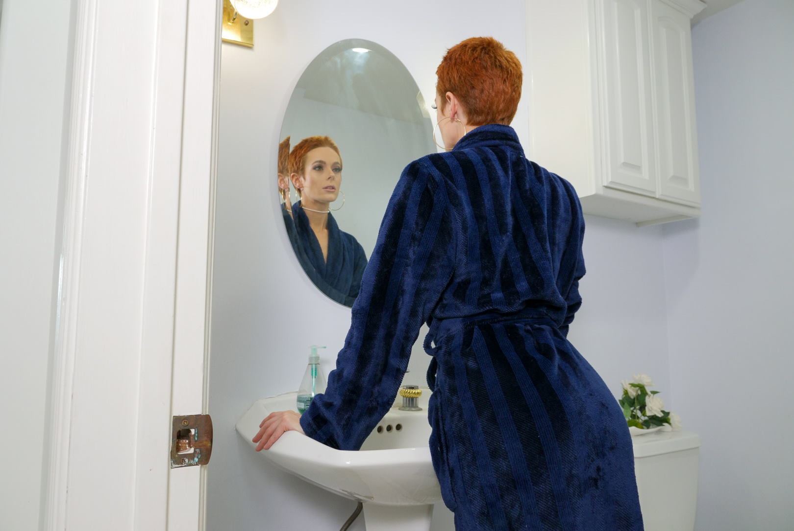 This lovely short haired milf is having fun at home with her butt plug and fast fingers. But a fan shows up and is ready to provide a real cock!