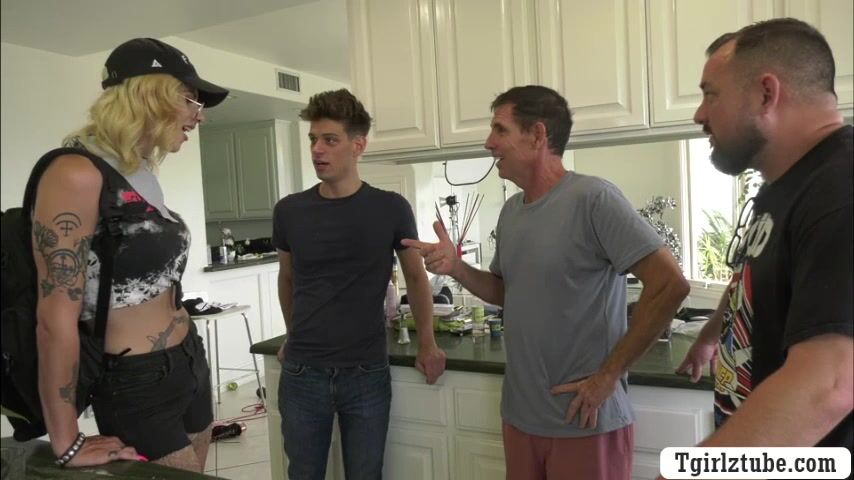 Shemale hitch hiker takes a free ride from a random guy.After that,the guy brings her home and meets his family.Next is,they go to his room and she then throats his big cock passionately and lets him bareback her wet ass.