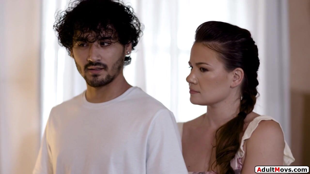 Busty stepmom eager to give her stepson and his gf a handson sexlesson.The big tits milf shows her how to suck a cock and licks the petite brunette.The cougar gets oral from her stepson and she watches him fuck his gf and lets her lick her pussy