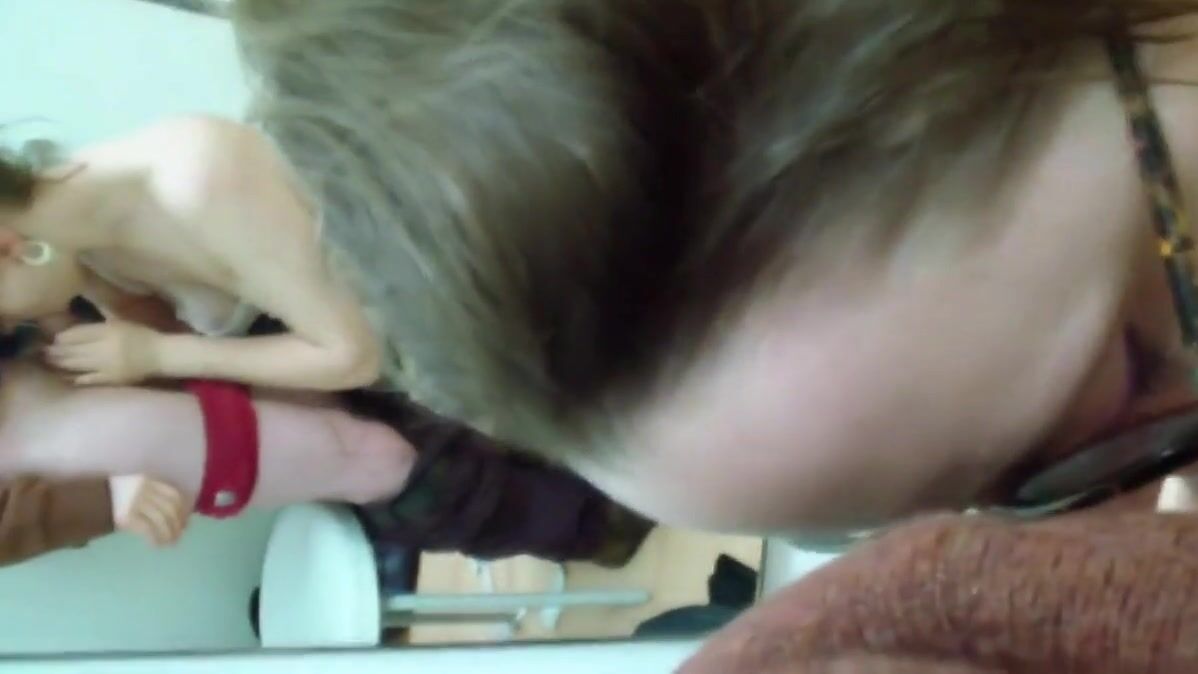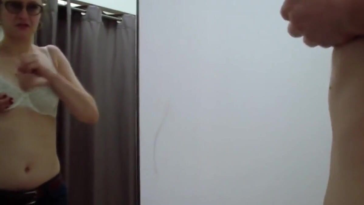 Brunette mature girlfriend sucking boyfriends dick in dressing room.