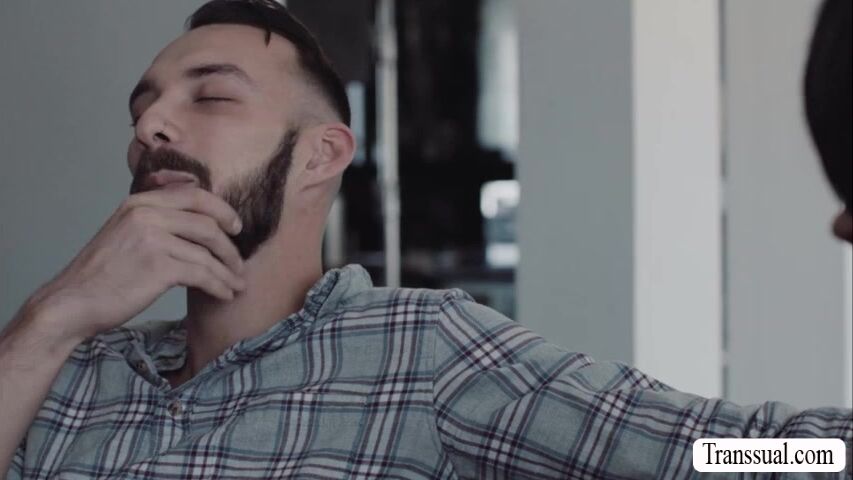 Sexy shemale invites her guy mistress to come into her place.After that,they sit on the couch and start kissing each other.Next is,she throats his big cock passionately and in return,her mistress sucks her shecock too before she gets analed.