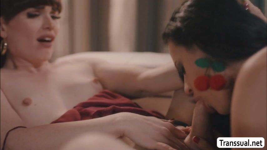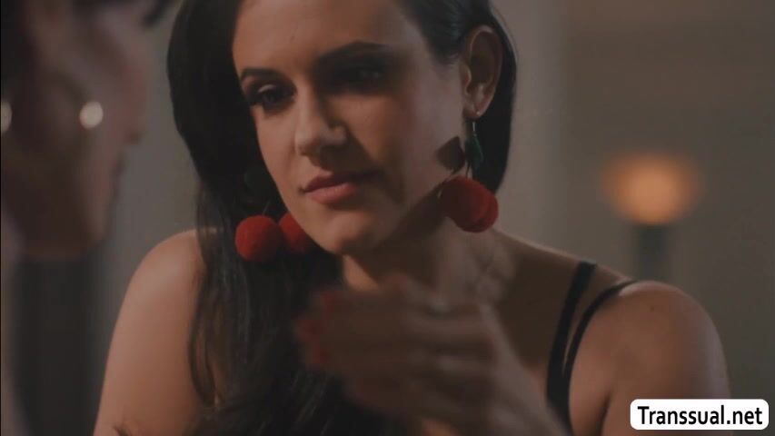 Brunette shemale and her busty bestfriend are on the couch talking on their past.After that,they get horny and start kissing each other.Next is,she lets her bestfriend suck her shecock and in return,she licks her pussy and she then fucks it so hard.