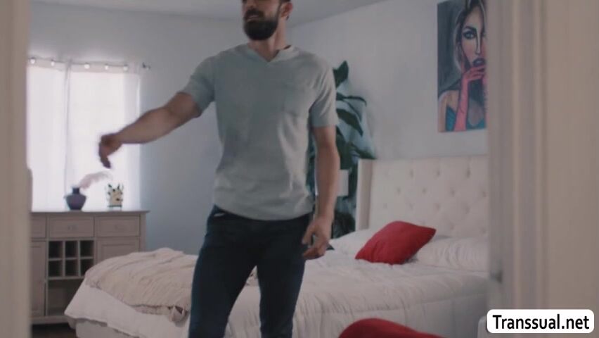 Busty shemale lets her guy neighbor come to her house and watch her while shes toying her tight ass using dildo.After that,she lets him put his dick inside her ass and she then throats it and puts it back.