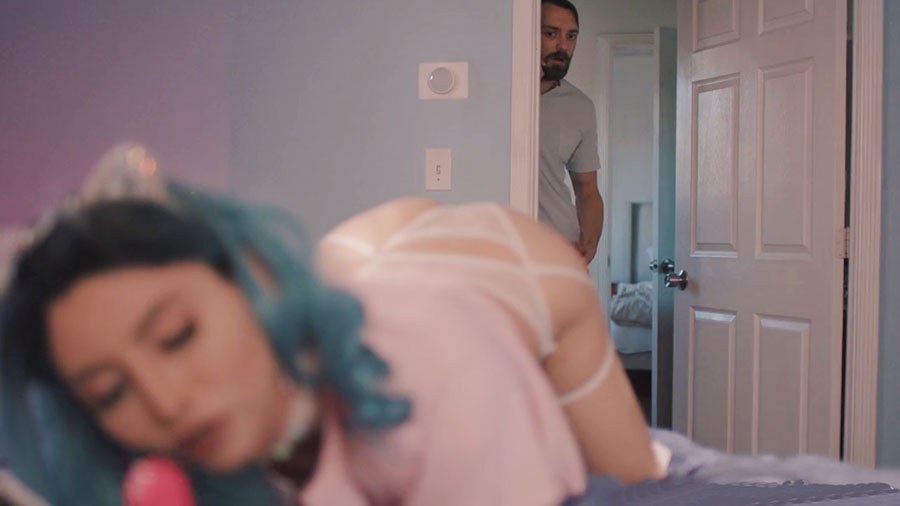 Horny shemale toyed and ass fucked by her neighbor