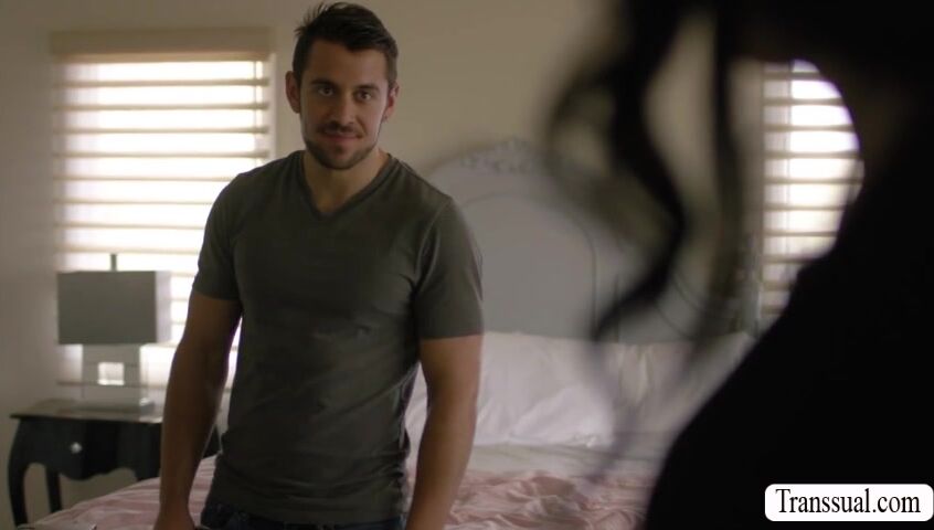Brunette shemale goes to the house of her ex boyfriend and talk about the sex video he send to her.Instead of getting mad,they start kissing each other and she then throats his big cock passionately.Next is,she lets her ex boyfriend fuck her ass.