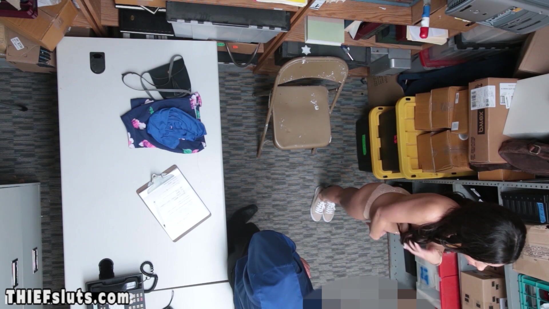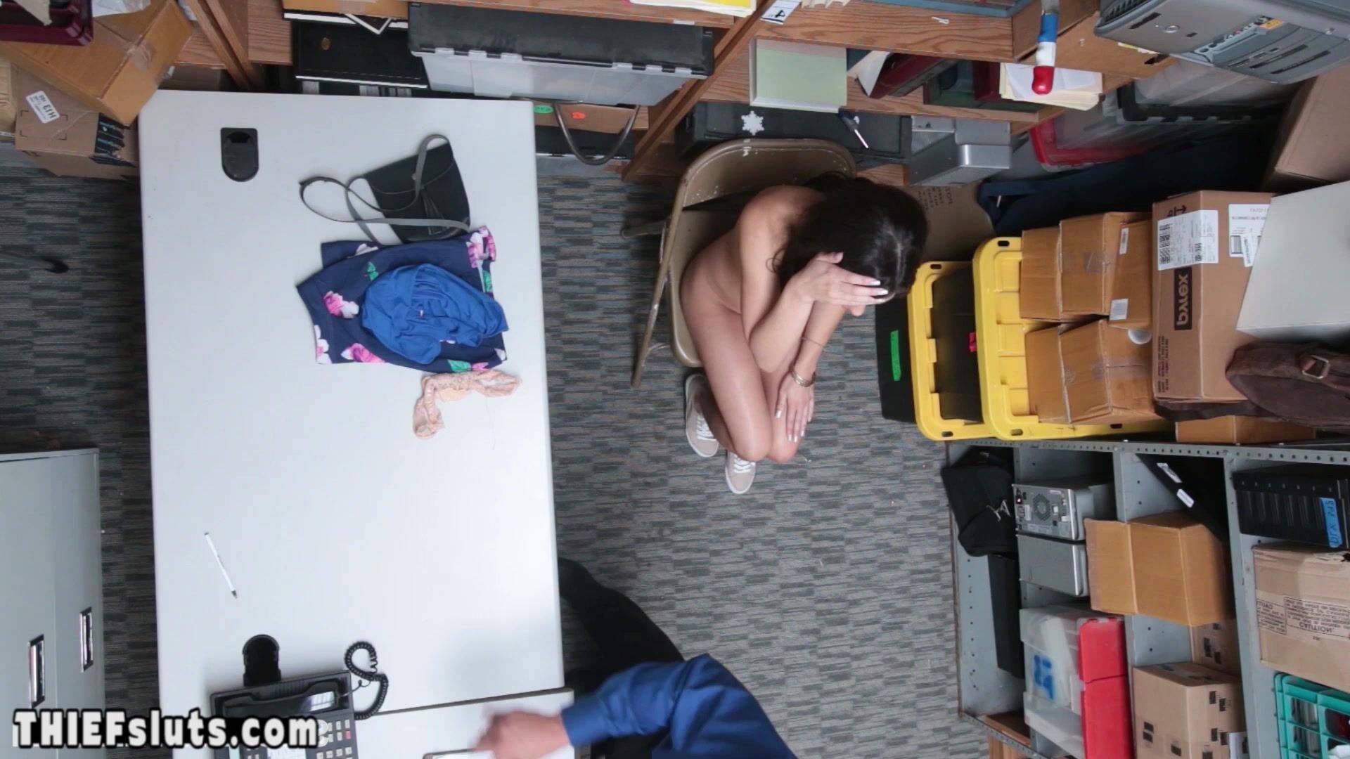 Dirty LP officer catches and strip searching a petite brunette teen shoplifter Taylor Maywith big tits So she hast to suck his big cock and let him to fuck her trimmed pussy to avoid jail