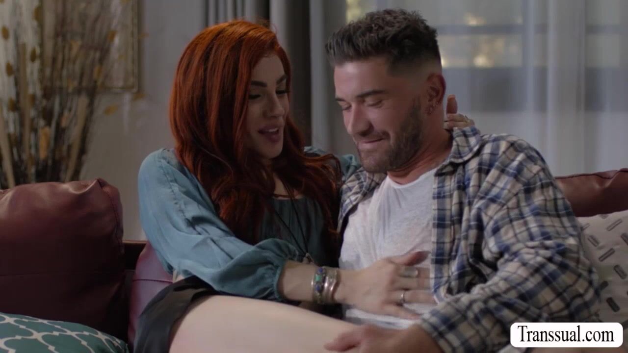 Redhead Tbabe brings her new guy in their house while her husband is working.After that,they start kissng each other on the couch and she then throats his big cock passionately.In return,the guy fucks her wet ass so deep and hard.