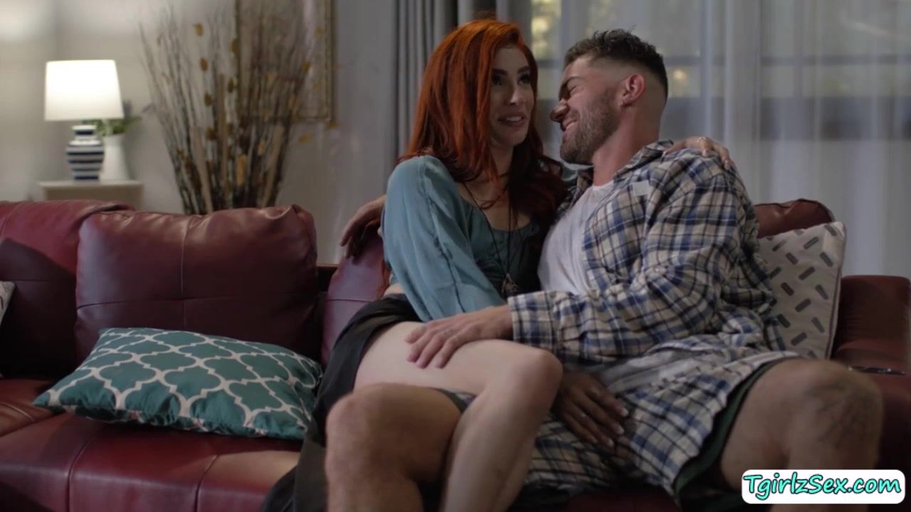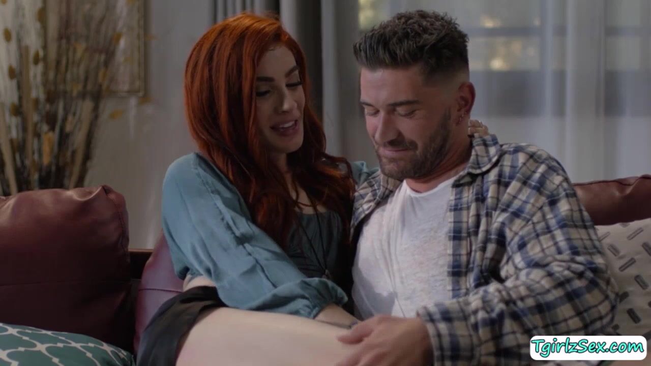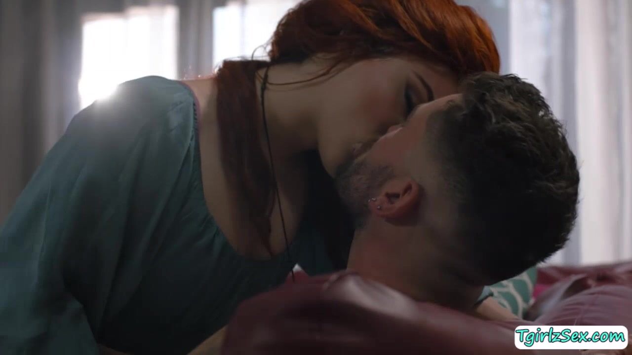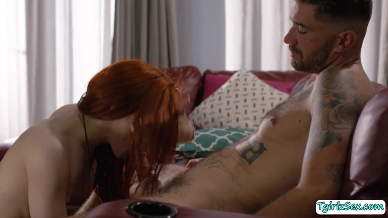 Slim ts beauty Ariel Demure picks up a random man ont he street while her husband is away. She fills in her lust by sucking his cock tenderly before bounces on it on the couch.
