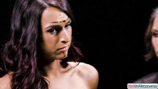 Ts model Khloe Kay painted gold by shemale manager Natalie Mars and photographer Adriana Chechik.The small tits tgirl assfingered while sucked off by the trans babe.The tranny anal barebacks and the lady gives an ass to mouth and squirts in her mouth