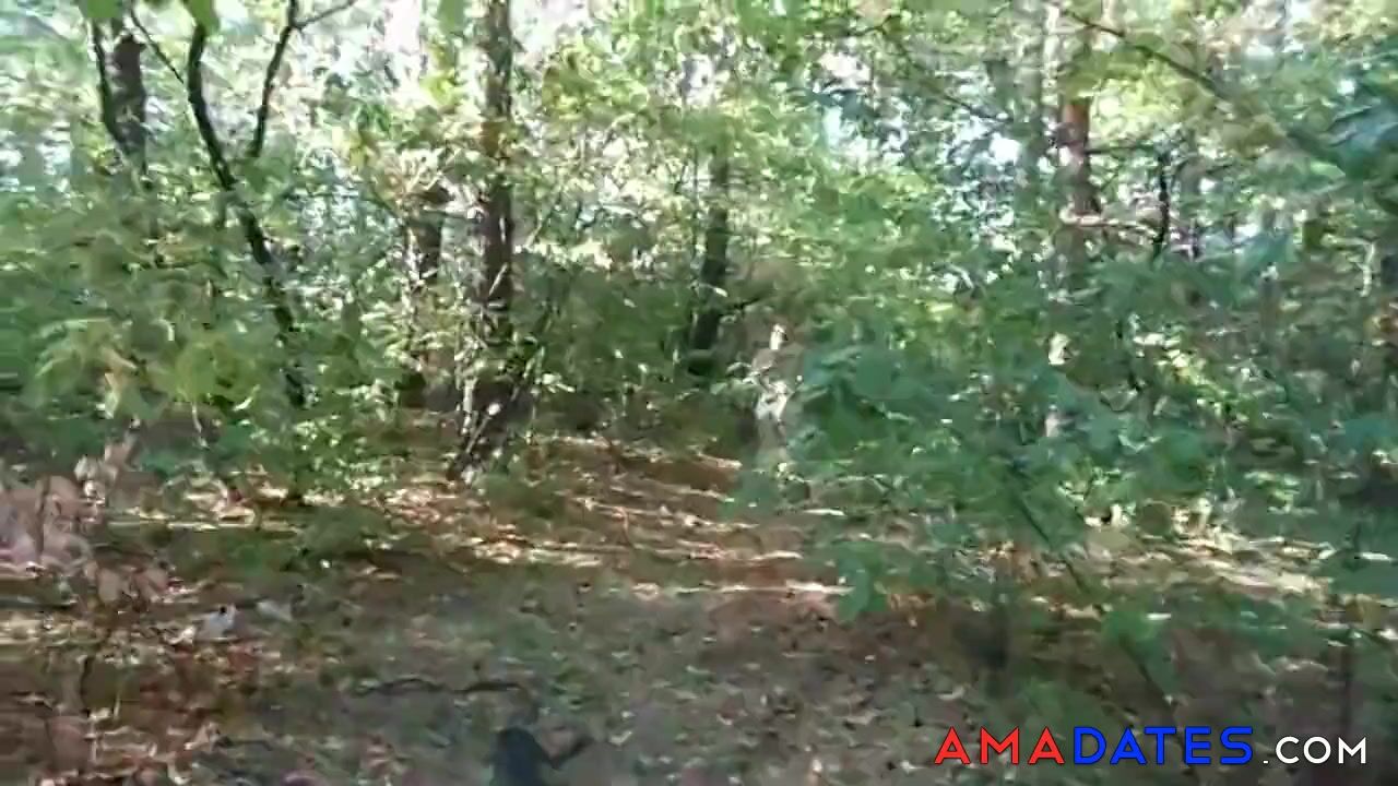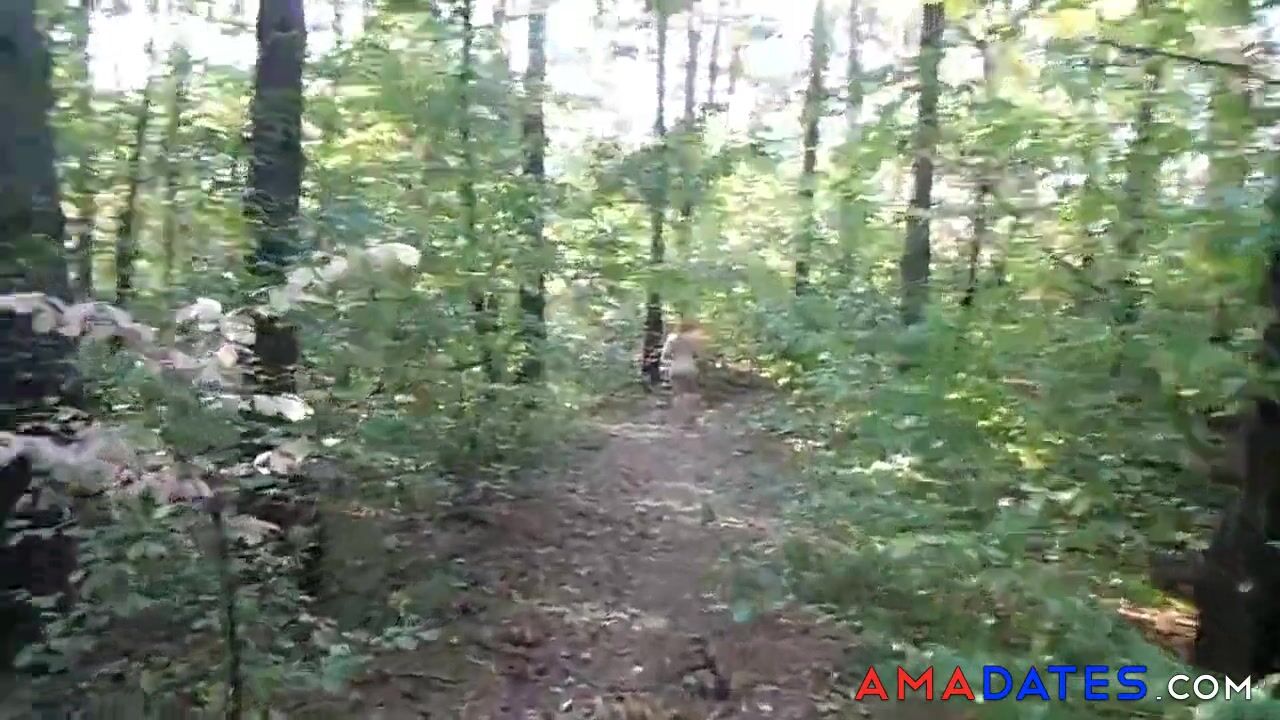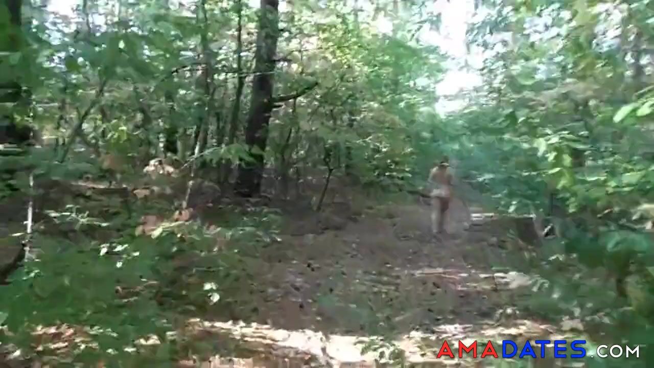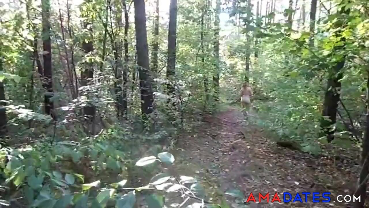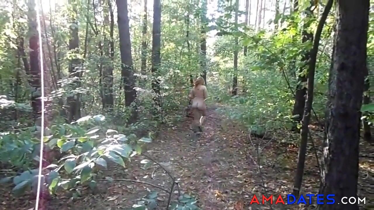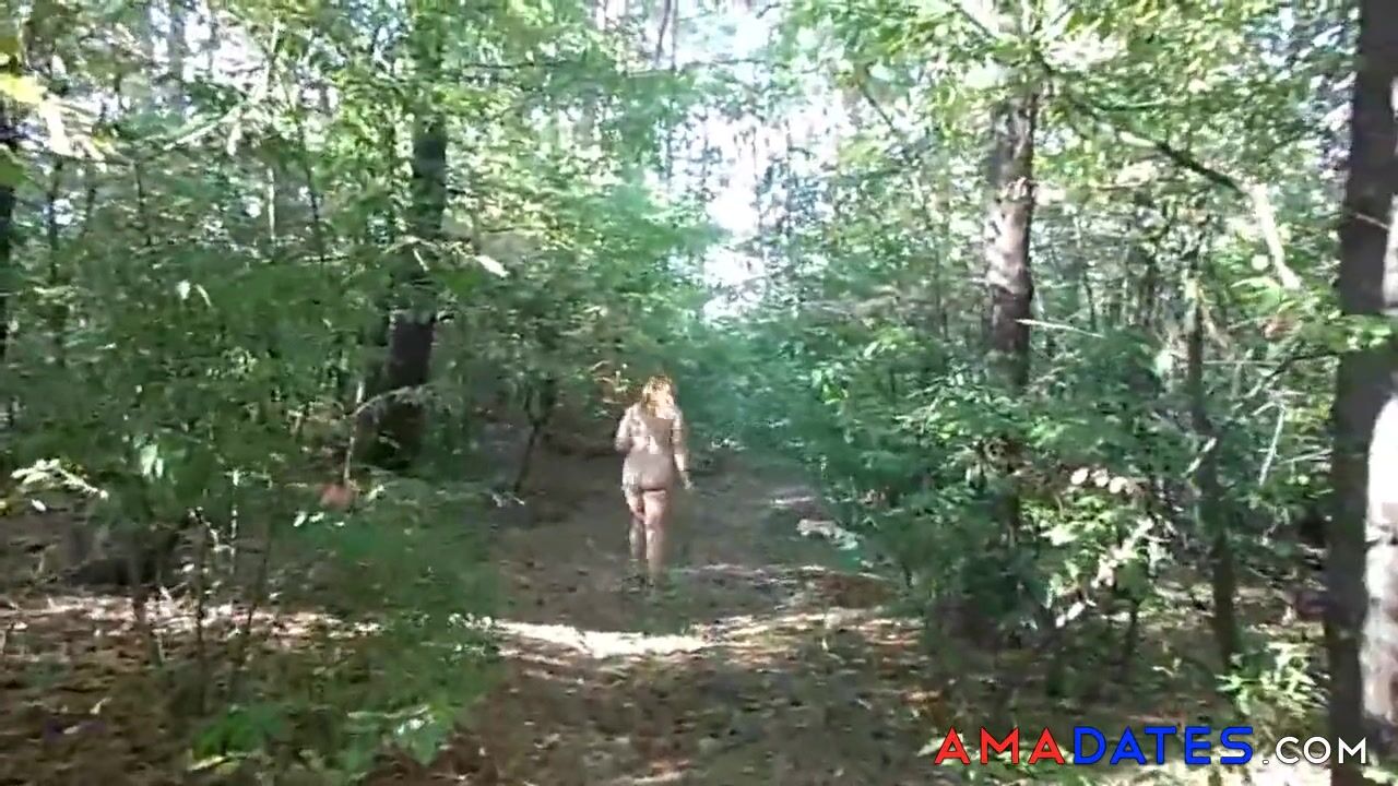 chubby girl with big booty walking nude in forest 2