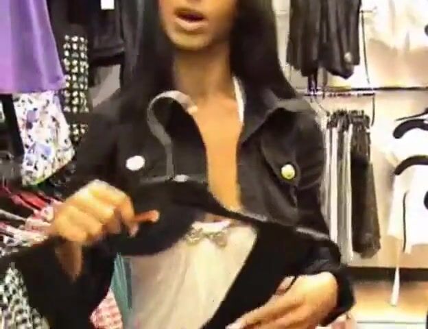 Schlampe lutscht und fickt in der Umkleidekabine des Einkaufszentrums - Cam
